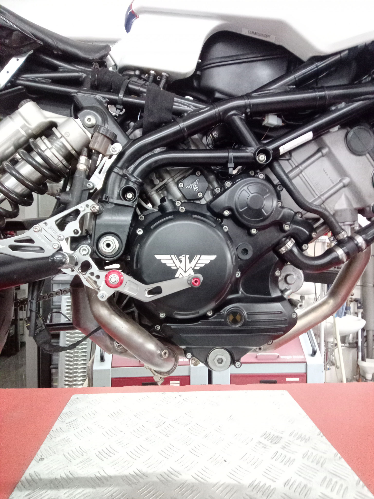 Fussrastenanlage handcrafted nach Bauart "Superbike" aus V4A