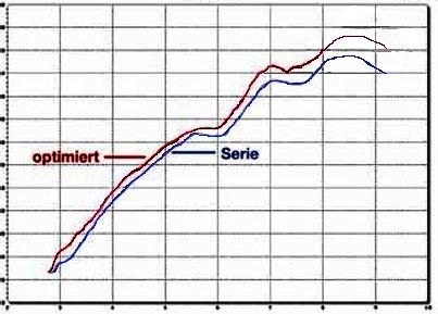 zur Anpassung im Standgas bei . Die Leistung steigt ab 7.000 bis 9.000 U/Min um ca. 1,5 PS je nach Auspuffanlage mit diesem Umbau leicht an.